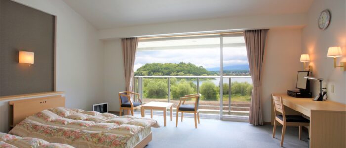 河口湖駅 → 周遊バス約30分 → 徒歩約15分
